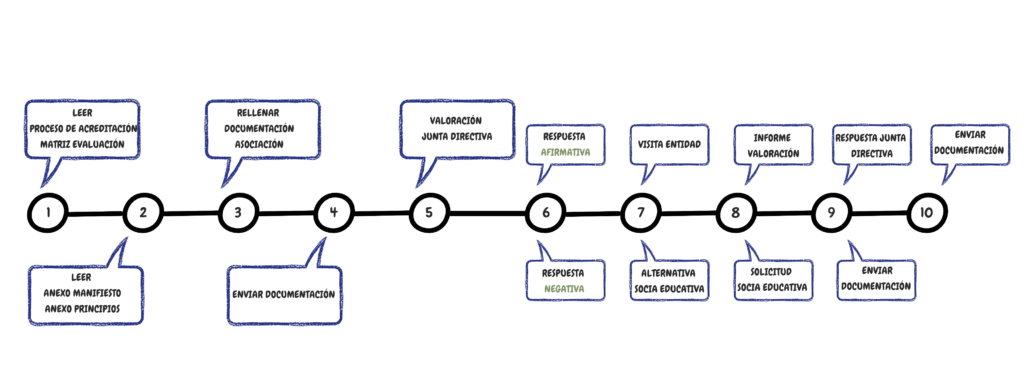 Una entidad socia candidata E2O debe someterse a un procedimiento de acreditación donde se demuestren las características y los principios mediante evidencias documentales. En esa fase participa una entidad independiente para dotar de legitimidad y objetividad al mismo. Fruto de dicho proceso se genera un informe para remitir al Comité asesor del proceso de acreditación, que realizará una propuesta fundamentada a la Junta Directiva sobre la acreditación de la escuela candidata para su conversión o no a socia activa E2O. Una entidad socia candidata E2O tiene un plazo máximo de 18 meses para superar el proceso de acreditación. Una vez que el/la responsable de acreditación de la unidad haya hecho la formación y preparado internamente la auditoría, tiene que rellenar la solicitud de auditoría para poder confirmar la fecha de auditoría.